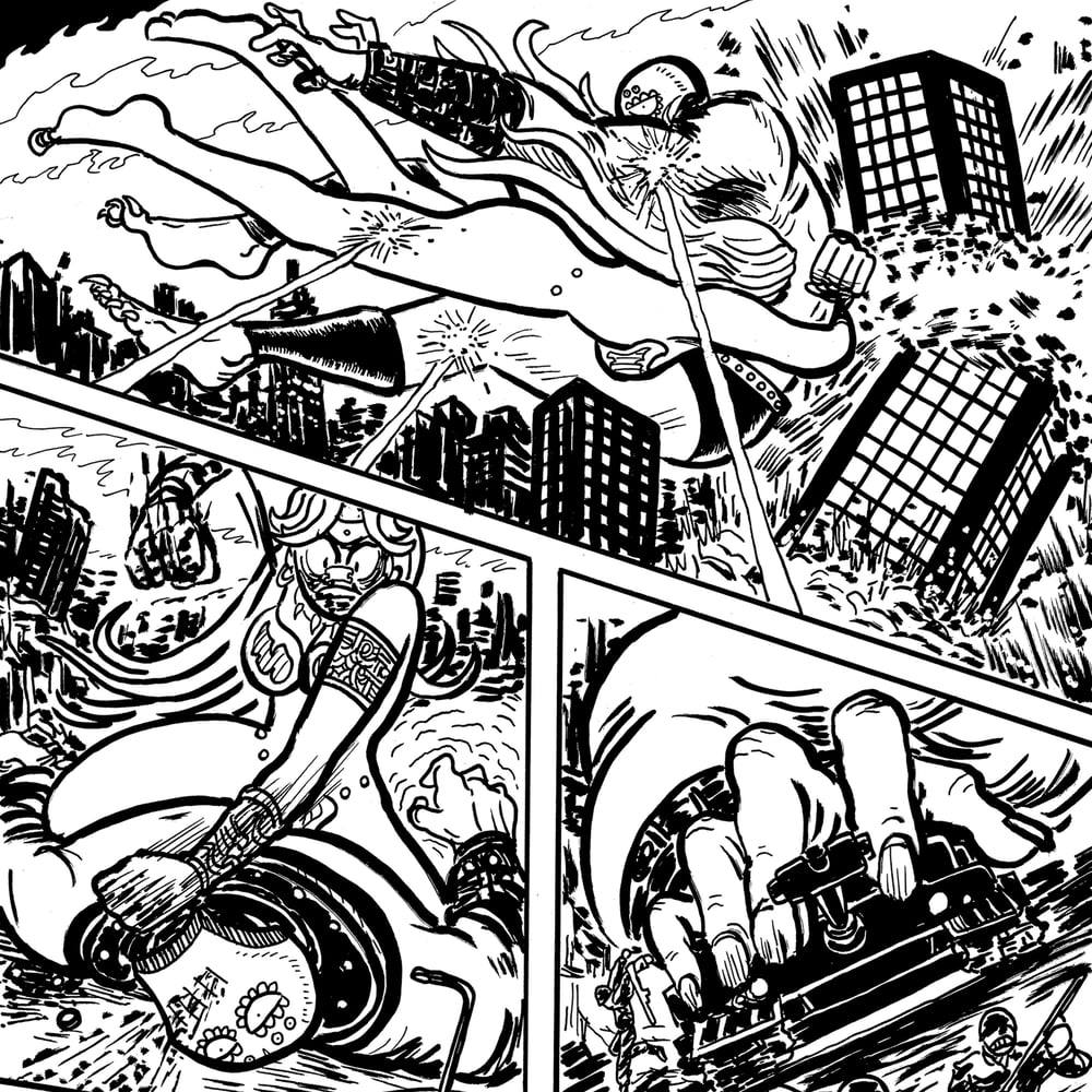 Martial arts champion Em retires to live peacefully in her desert home to raise her younger brother Barry. That peace is shattered when Em is attacked by a skull masked warrior with incredible strength named Deathking Ra. Ra is a demonic entity that travels time and space, killing the strongest martial artists in all existence. Thrown through time and marked for death by Ra, Em’s only hope for survival is with the help of her two incarnations from past lives. Golden, a gigantic boxer from the 1930’s, and Brother Fao, a reptilian monk. Em’s blood-soaked quest to return home will take her beyond time, space, and death itself.